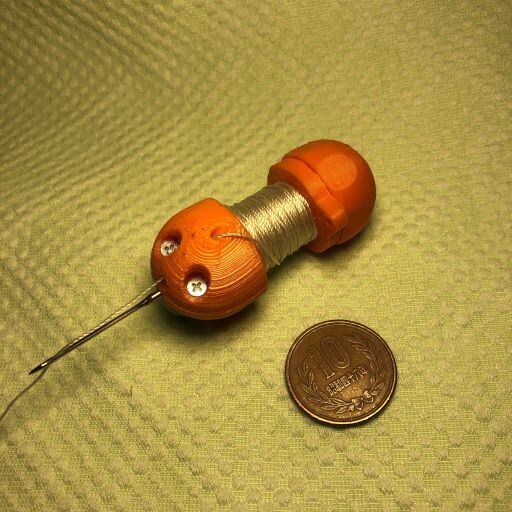 3Dプリンタの特徴を生かすために小型化する、糸の残りが分かりやすいするため胴体を糸巻きにする。